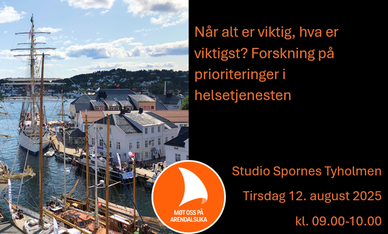 Når alt er viktig, hva er viktigst? Møt oss på Arendalsuka i dette frokostarrangementet om prioritering. Hvordan kan vi styrke forskningen på prioritering og implementering av nye metoder og tiltak? Hvordan kan vi sikre at forskningsinnsatsen er rettet mot de viktigste utfordringene og bidrar til bærekraftige løsninger for fremtidens helse- og omsorgstjeneste?